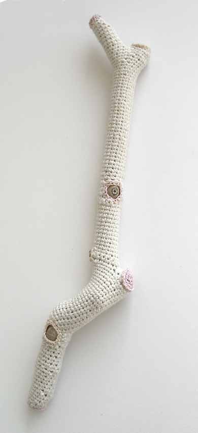 Zo kan het ook. Gespot op de blog van Gewoon Chic. Zo is haakwerk ineens kunst. De dame hierachter: Susanna Bauer. Het meeste van haar werk is gebaseerd op ogenschijnlijk onopvallende materialen die ze op haar wandelingen in de natuur vindt. Met ambachtelijke technieken zoals weven en haken verwerkt ze deze elementen tot iets heel moois.